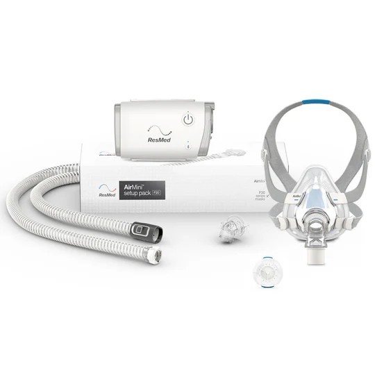 The AirMini™ with F20 setup pack (mask included) includes all parts required to use AirMini. (Only the P10 for AirMini, the N20 with Setup Pack, the N30 with Setup Pack, the F20 with Setup Pack, and the F30 with Setup Pack are compatible with the AirMini. NO OTHER MASK IS COMPATIBLE)
